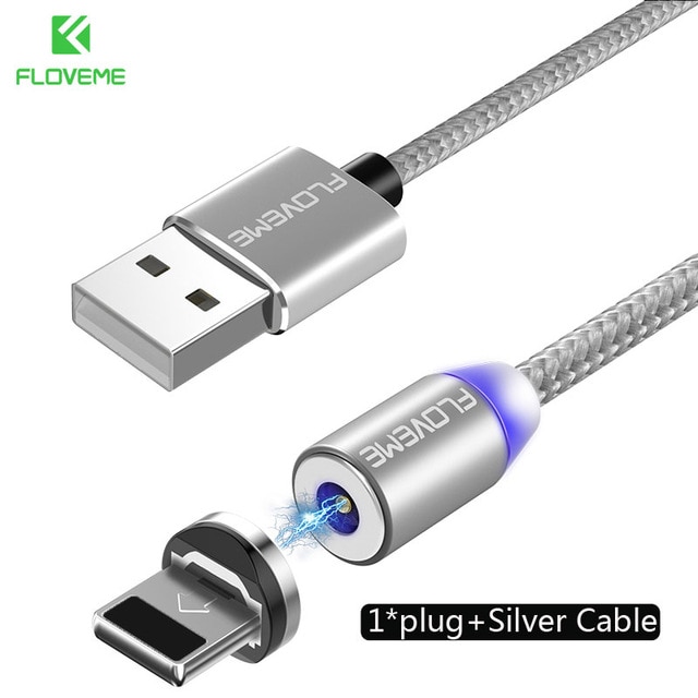 FLOVEME 1M Magnetic Charge Cable , Micro USB Cable For iPhone XR XS Max X Magnet Charger USB Type C Cable LED Charging Wire Cord